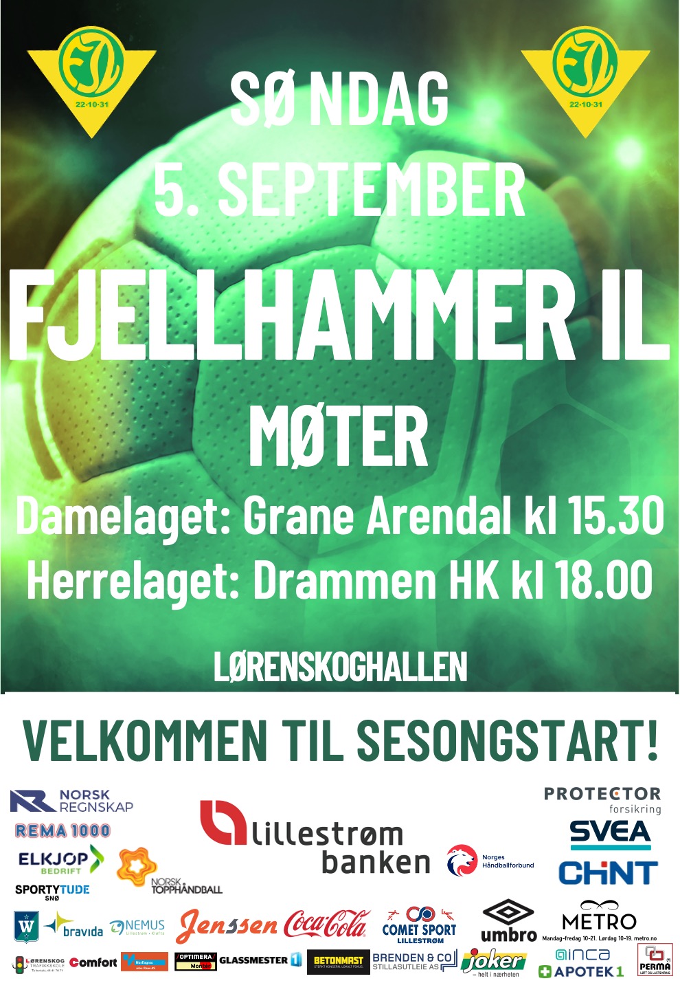 På søndag er det endelig sesongstart for Fjellhammer IL i Lørenskoghallen! Damelaget spiller mot Grane Arendal kl 15.30 og herrelaget spiller mot Drammen HK kl 18.00.