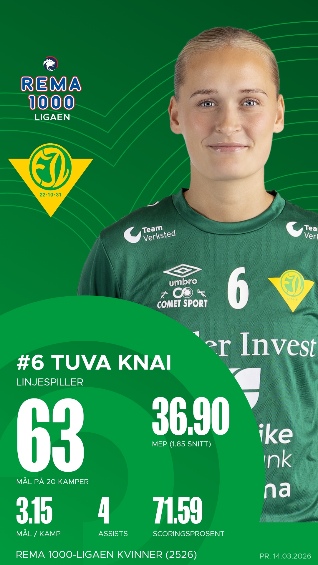 Men Fjellhammer har sine egne våpen – og de er ikke til å spøke med. Bakspiller Sarah Deari Solheim har vært en av ligaens mest produktive spillere med over 150 scoringer og et imponerende antall målgivende pasninger. Hun er lagets ubestridte leder og x-faktor. Ved siden av henne finner vi linjespiller Tuva Knai, som har vært dødelig effektiv fra strek med høy treffprosent og stor fysisk tilstedeværelse i duellene. Midtback Martine Tveter binder angrepet sammen med presise krysninger og smarte pasninger, mens målvakt Zaynab Elmrani har stått frem med flere refleksredninger i nøkkelsituasjoner. Dette er spillere som kan snu kampbildet på et øyeblikk dersom de får flyt i spillet.